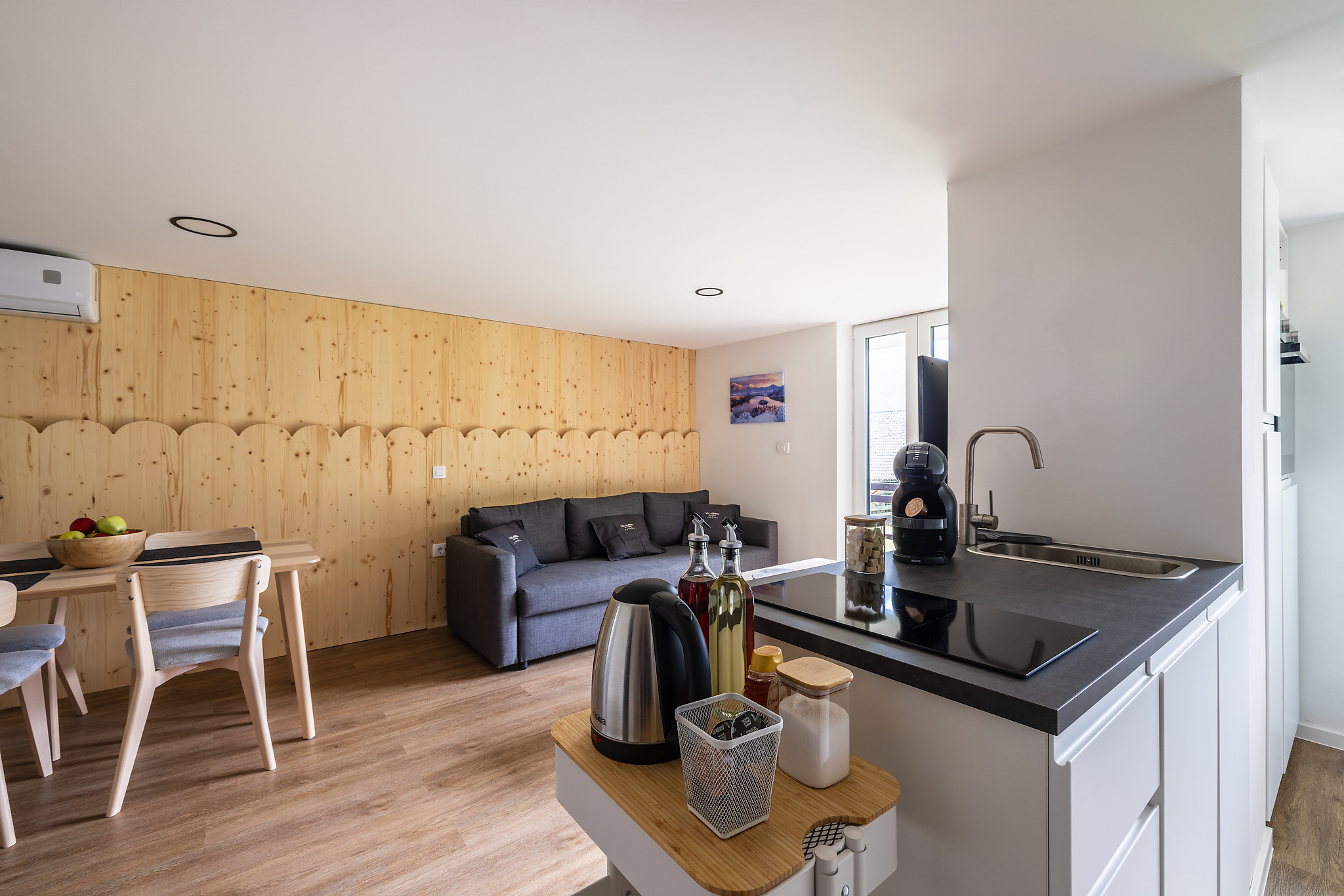 Each unit offers a private kitchen, bathroom with shower, air conditioning, a flat-screen TV, and free WiFi. The kitchens are fully equipped and include a refrigerator, dishwasher, oven, microwave, coffee machine, electric kettle, and toaster with a waffle-making attachment. Every bathroom is equipped with a hairdryer and basic toiletries.