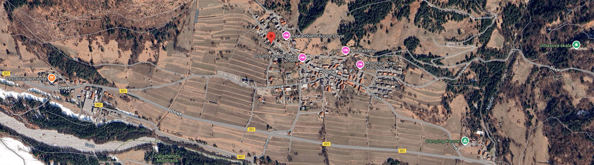 The apartments are located in the quiet village of Dovje, offering a direct view of the Triglav mountain range.